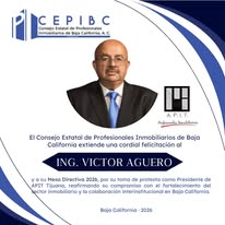 El Consejo Estatal de Profesionales Inmobiliarios de Baja California (CEPIBC) extiende una cordial felicitación al Ing. Víctor Agüero por su toma de protesta como Presidente de la Asociación de Profesionales Inmobiliarios de Tijuana (APIT).
